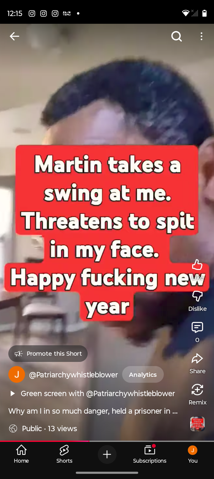 Several videos of him shoving me, coming at me aggressively, menacing me in public areas of the house.