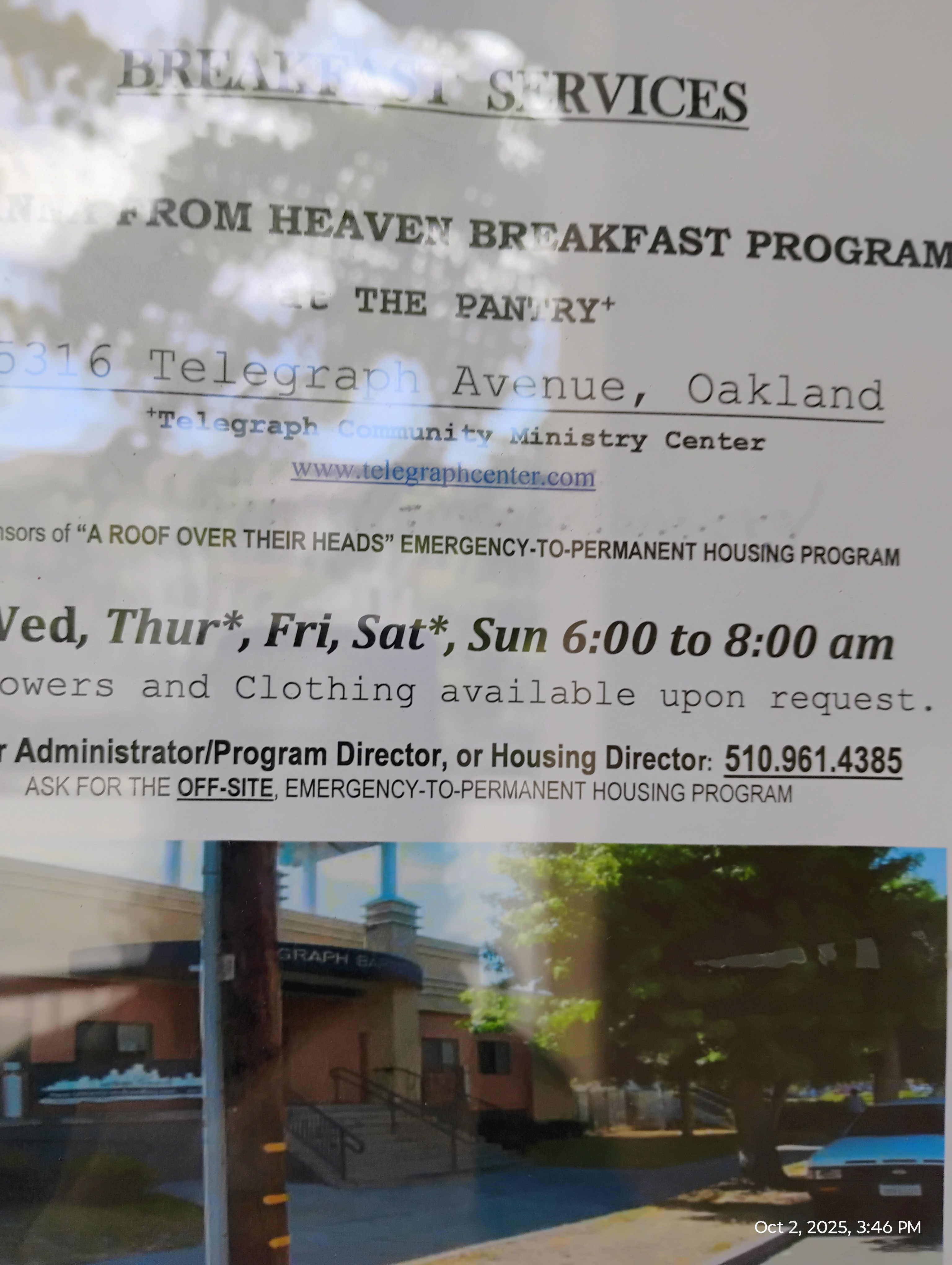 Photo: Flyers outside church promising “Emergency Shelter” / “Housing Assistance”