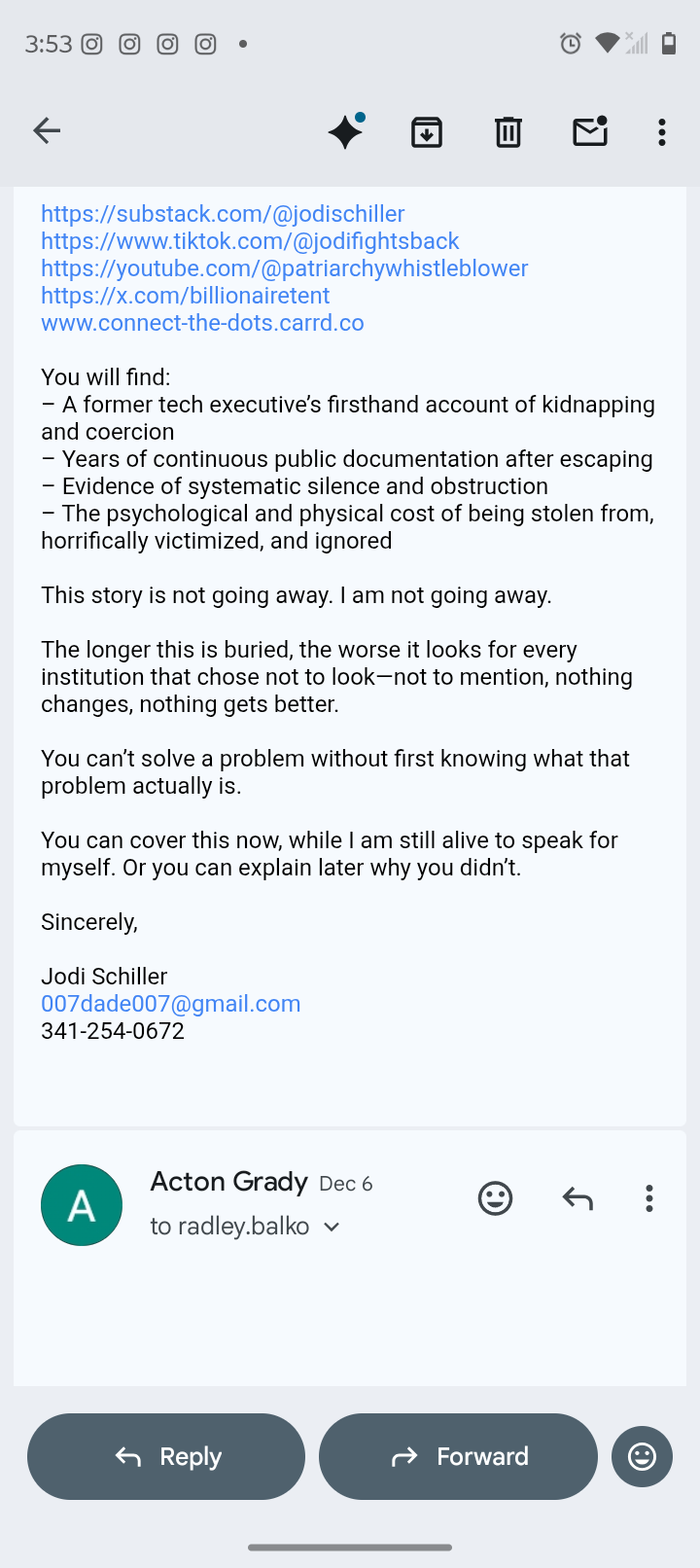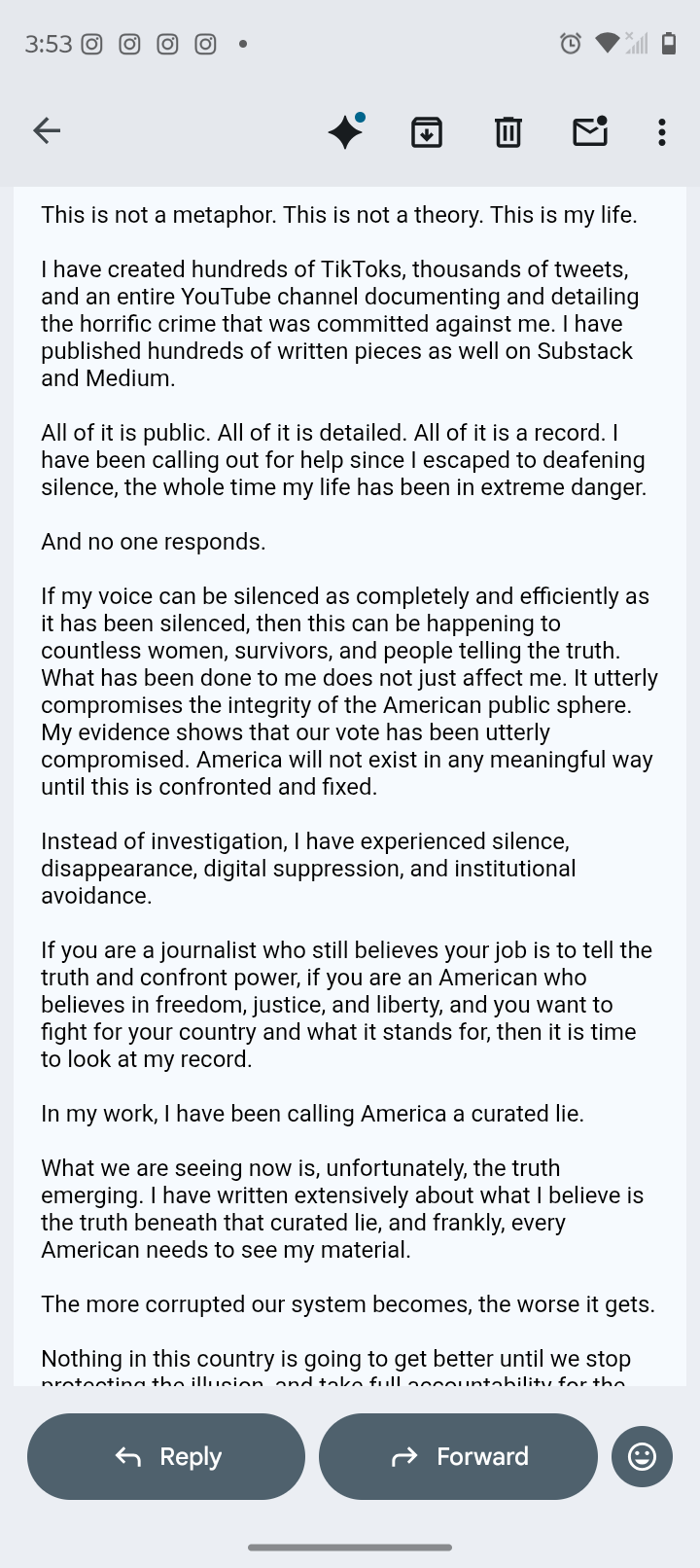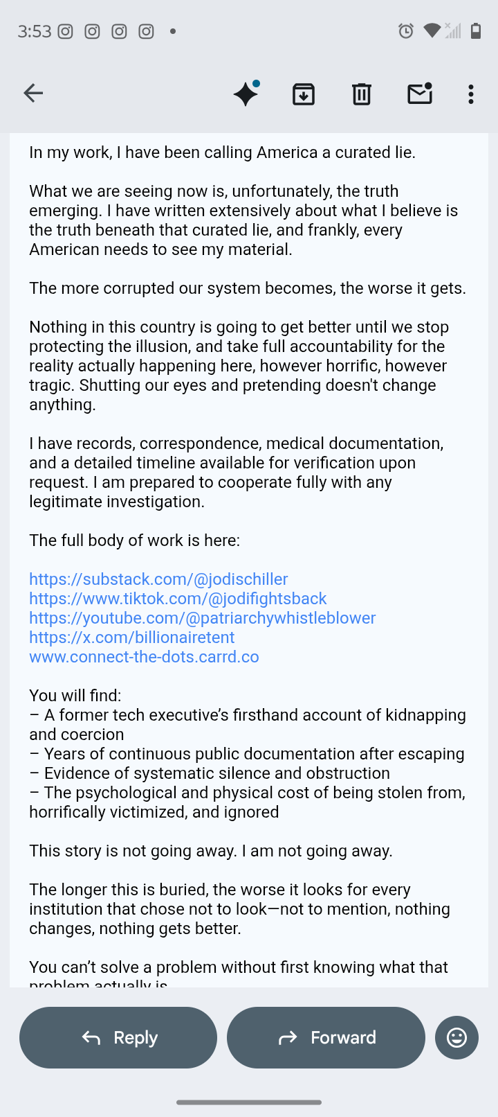 When an outlet built on exposing abuse refuses to even acknowledge a survivor who comes forward with facts, it sends a message. Not just to me, but to every other survivor watching: